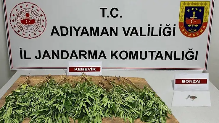 Adıyaman İl Jandarma Komutanlığı ekipleri ve Cumhuriyet Başsavcılığı koordinesinde uyuşturucuyla mücadeleye yönelik operasyon yapıldı. Operasyonda, 23 kök kenevir, 2 gram bonzai ele geçirildi.