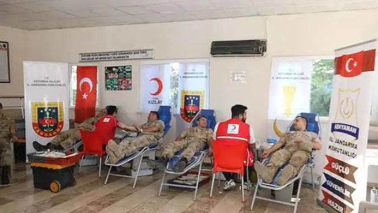 Adıyaman İl Jandarma Komutanlığı'nda görevli jandarma personellerinden kan bağışına destek.