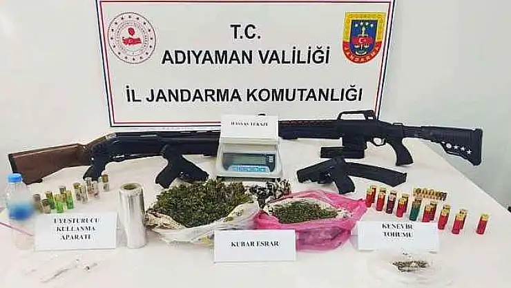 Adıyaman'da jandarma ekipleri tarafından 2 adrese yapılan operasyonda silah ve uyuşturucu ele geçirildi.