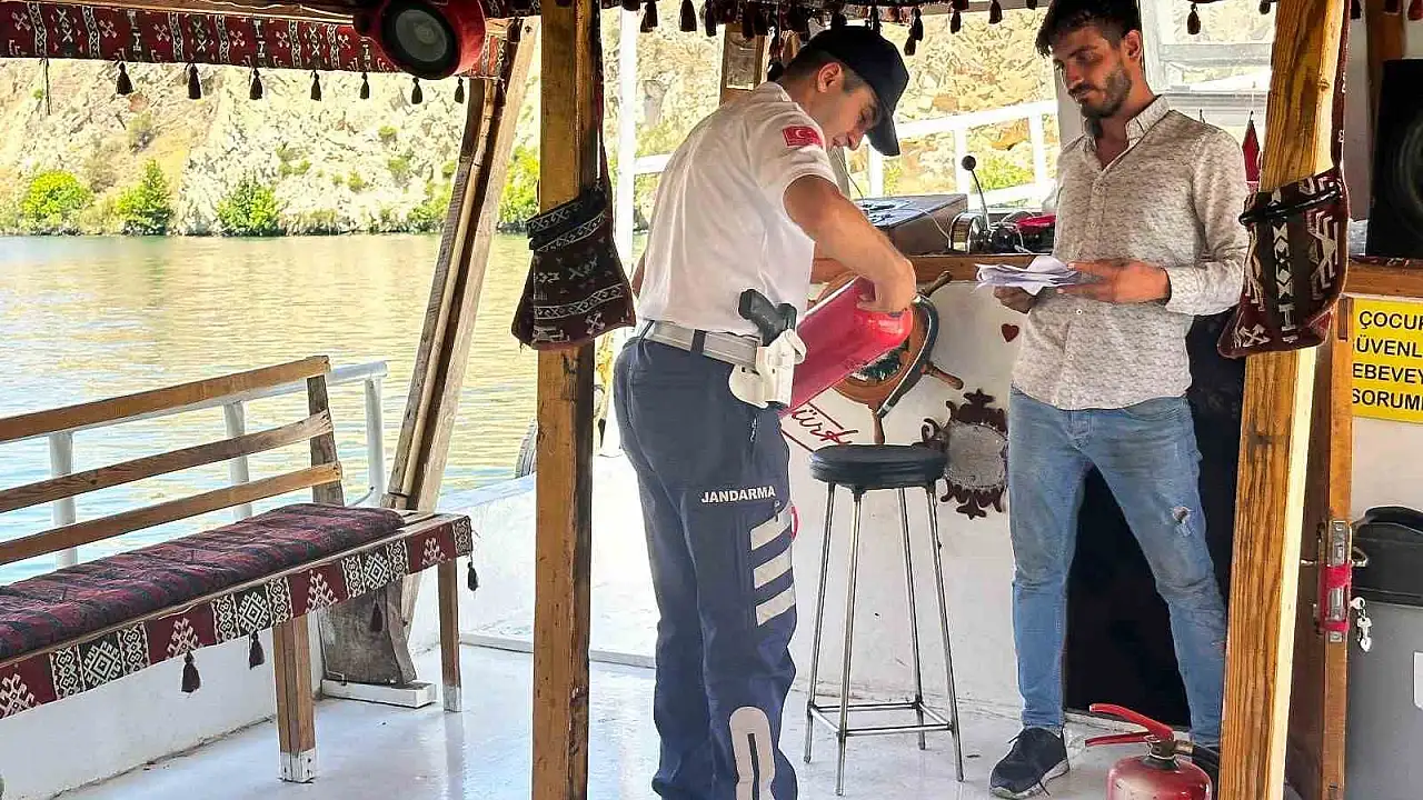 Şanlıurfa İl Jandarma Komutanlığı Asayiş Bot Timi tarafından Halfeti’de su üstündeki devriye faaliyetlerinde teknelerde denetim gerçekleştirildi. Denetimlerde bayrak, can yeleği, can simidi, yangın söndürme cihazları, ruhsat, iç suya elveriş belgesi, bağlama kütüğü ruhsatnamesi, tonilato belgesi, gemi sevk ve idare belgeleri kontrol edildi. Gemi personeli de bilgilendirilerek vatandaşların can güvenliğinin öncelikli olduğu belirtildi.