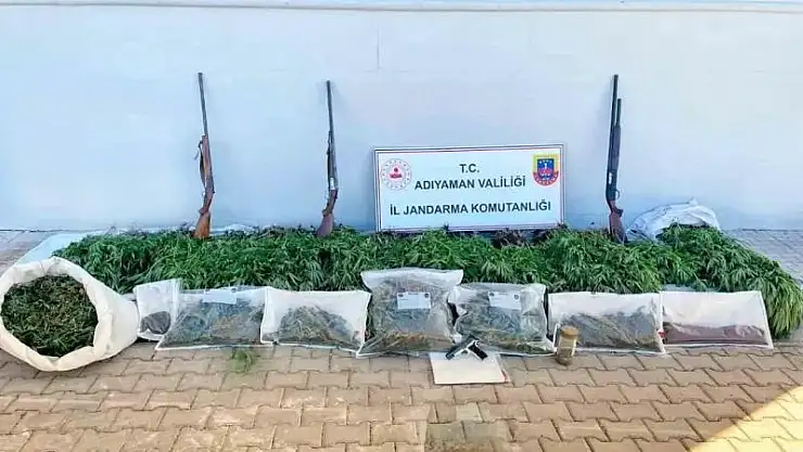 Adıyaman'ın Besni ilçesinde jandarma ekipleri çok miktarda uyuşturucu madde ve silah ele geçirdi.