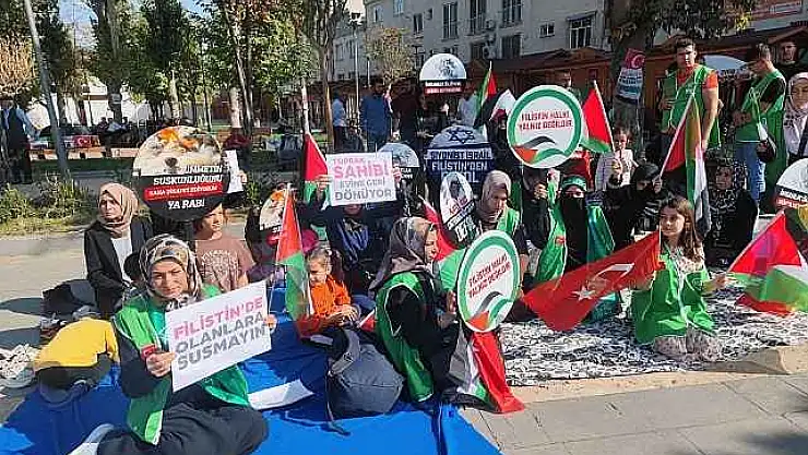 İsrail'in Filistin'e yönelik saldırılarını protesto etmek için çeşitli sivil toplum kuruluşundan kadınlar sessiz oturma eylemi başlattı.