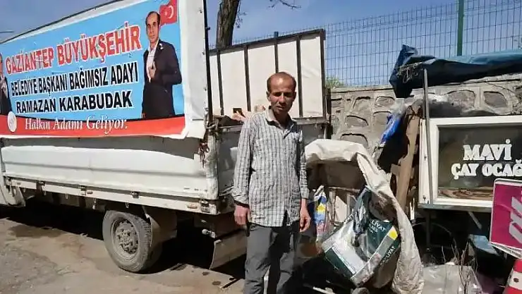 Gaziantep'te atık kağıt toplayıcılığı yapan ve yerel seçimlerde bağımsız büyükşehir belediye başkan adayı olan Ramazan Karabudak, resmi olmayan sonuçlara göre 3 bin 15 oy alarak köklü partilerin önüne geçti.