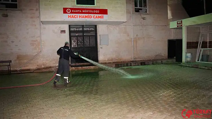 Kahta Belediyesi itfaiye ekiplerinden camilerde yıkama seferberliği