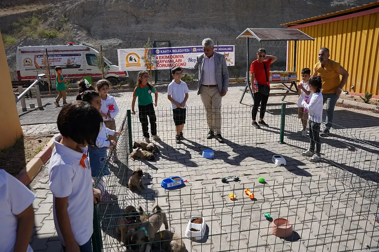 Adıyaman'ın Kahta Belediyesi Veteriner İşleri Müdürlüğü, 4 Ekim Dünya Hayvanları Koruma Günü dolayısıyla Sokak Hayvanları Bakım ve Rehabilitasyon Merkezi'nde farkındalık etkinliği düzenledi.