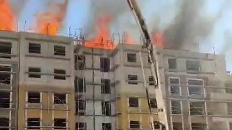 Kahta'da yapımı devam eden 6 katlı binada çıkan yangın korkuttu