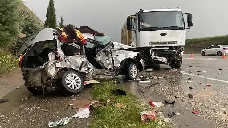 Adıyaman'da, kamyon ile otomobilin çarpışması sonucu meydana gelen feci kazada 2 genç arkadaş hayatını kaybetti.