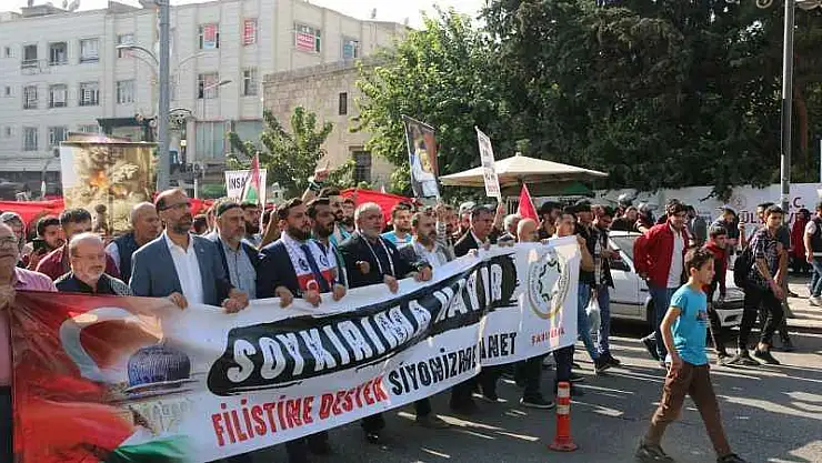Filistin'de yaşanan zulüm nedeniyle Şanlıurfa'da yürüyüş gerçekleştirildi. Yürüyüşe erkeklerin yanı sıra kadınlar da katılarak Filistin'e destek verdi. Balıklıgöl yerleşkesinde başlayan yürüyüşte Filistin'e destek amaçlı pankartlar açıldı. Filistin'deki katliama dikkat çekmek amacıyla kanlı ayakkabı giyilerek kanlı oyuncaklar taşındı.