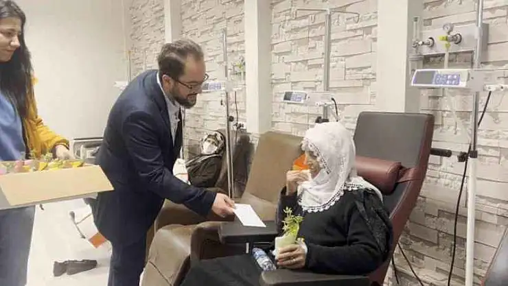 Adıyaman Eğitim ve Araştırma Hastanesi kemoterapi ünitesinde tedavileri süren kanser hastalarına moral ziyaretinde bulunan Kahta İlçe Sağlık Müdürlüğü Eğitim Birimi personelleri, hastalara zarflar içinde ilettiği destek mesajları ile motivasyonlarını diri tutmaya çalışıyor.
