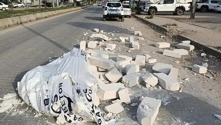 Adıyaman'ın Gölbaşı ilçesi Adıyaman Bulvarı üzerinde seyir halindeki bir tırdan karayoluna inşaat malzemeleri döküldü.