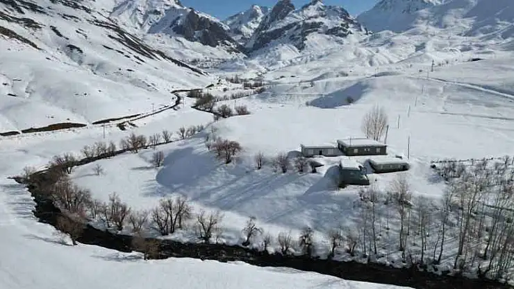 Karlı kaplı Beytüşşebap'ta menderesler havadan görüntülendi