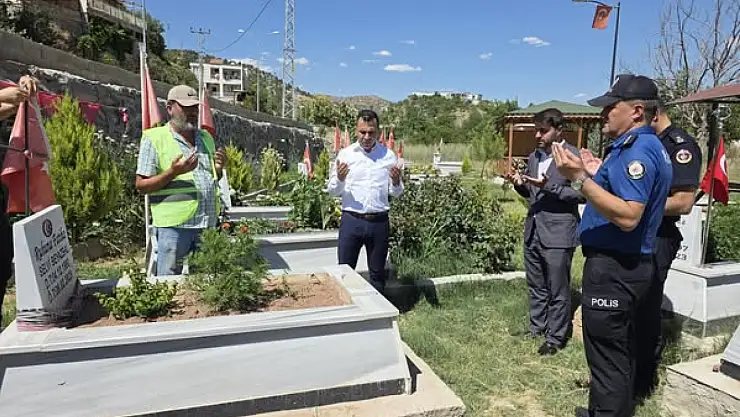 Gölbaşı Kaymakamı Kadir Algın ve beraberindeki heyet deprem şehitlerinin bulunduğu kabristanı ziyarete ederek dua etti.