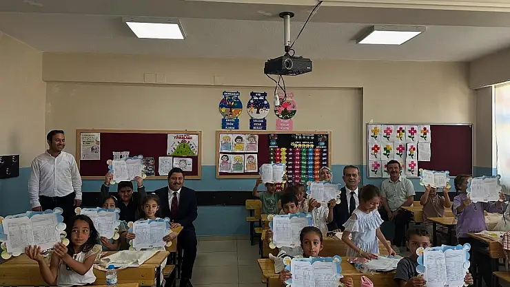 Sincik Kaymakamı Yunus Emre Bozkurtoğlu, 2024-2025 eğitim-öğretim yılının yaz tatili nedeniyle, Sincik Atatürk İlkokulunda düzenlenen karne dağıtım törenine katılarak karne almanın mutluluğunu yaşayan öğrencilerin heyecanına ortak oldu.