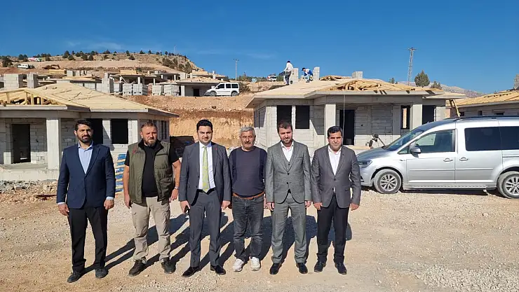 Gölbaşı Kaymakamı Tarık Buğra Seyhan, 6 Şubat Kahramanmaraş depreminde etkilenen Ozan Köyünde yapımı devam eden deprem konutlarında incelemelerde bulundu.