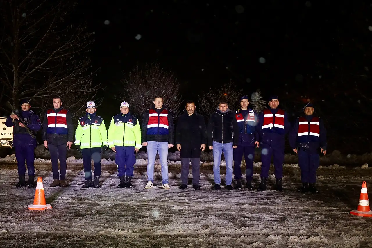 Uygulama noktalarında görev yapan personelin ve vatandaşların yeni yılını tebrik eden Kaymakam Soysal, sürücülerle sohbet ederek alınan tedbirlerin vatandaşlarımızın huzur ve güvenliği açısından önem taşıdığını ifade etti.