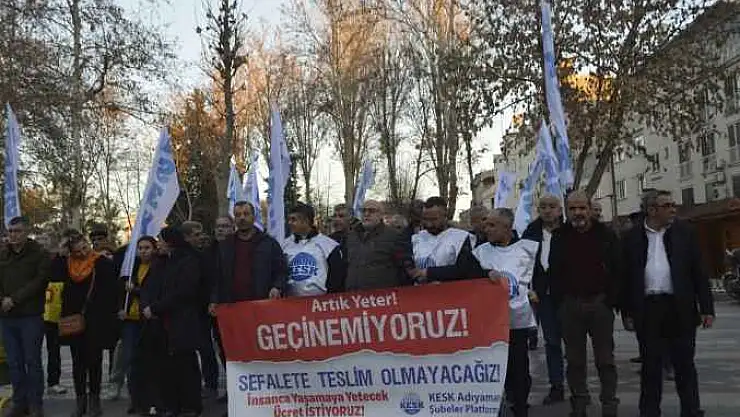 Demokrasi Parkı önünde toplanan Kamu Emekçileri Sendikaları Konfederasyonu (KESK) Adıyaman Şubesi üyeleri maaş zammına tepki gösterdiler.