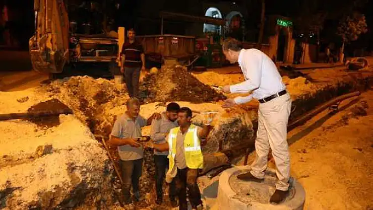 Adıyaman Belediyesi tarafından altyapısı, kaldırımları ve ışıklandırmasıyla örnek caddelerden olacak olan Cumhuriyet Caddesi'nde Su ve Kanalizasyon İşleri Müdürlüğü (ASKİM) ekipleri tarafından yürütülen altyapı çalışmalarını inceleyen Belediye Başkanı Dr. Süleyman Kılınç, 40 dereceyi aşan sıcakta çalışan personele baklava ikramında bulunup, kolaylıklar diledi.