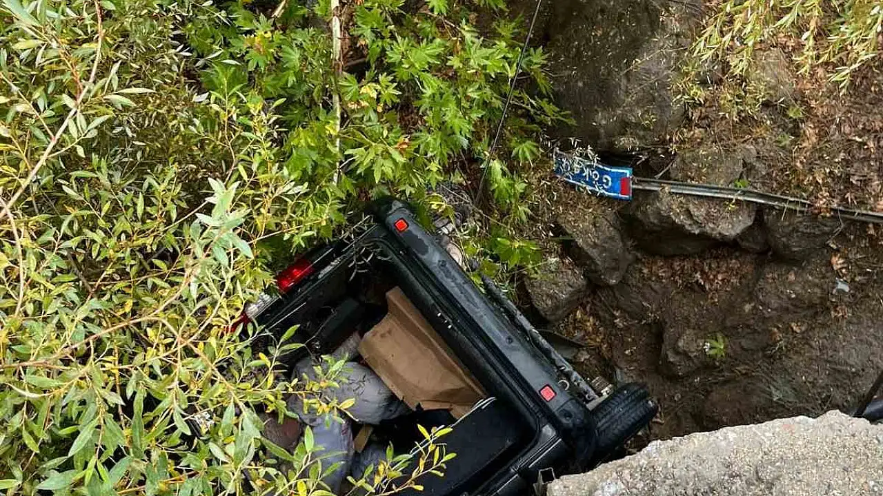 Köprüden uçan otomobil ağaç dallarında asılı kaldı: 2 yaralı