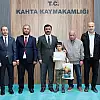 Damlacık Köyünde yapımı devam eden Cami ve Taziye evi inşaatına kumbarasında biriktiği parasını bağışlayarak destek olan Ahmet Demiral'ı Kahta Kaymakamı Muhammed Üsame Soysal teşekkür belgesiyle ödüllendirdi.
