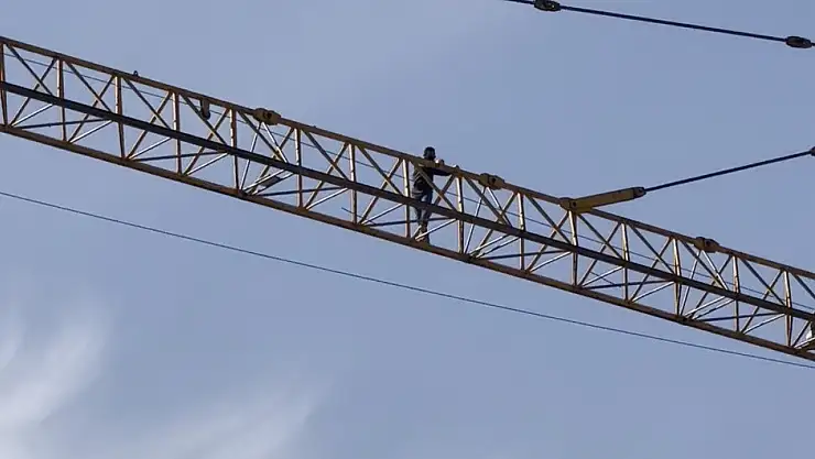 Kule vincin üzerine çıkarak canını hiçe saydı