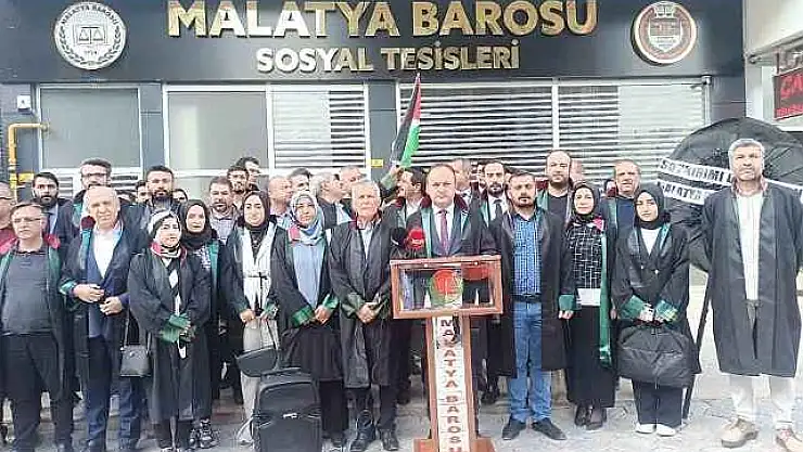 Malatya Baro Başkanı Av. Onur Demez ve baro yönetimi tarafından gerçekleştirilen basın açıklamasına birçok avukat destek verdi. Burada konuşan Başkan Onur Demez, “Filistin ve 21. yüzyıl Nazi’si İsrail arasında 7 Ekim tarihinden itibaren yaşanan çatışmalar her an artarak devam etmektedir. İsrail tüm dünyanın gözü önünde insanlığı yok ederek, soykırım yaparak savaş suçu işlemektedir. Dünyanın neresinde olursa olsun başta çocuklar ve kadınlar olmak üzere sivillere yönelik gerçekleştirilen tüm saldırıları; saldırılar kimden gelirse gelsin, kime yönelik olursa olsun en sert şekilde kınıyoruz. Sivilleri doğrudan hedef alan, hastaneleri, okulları vuran bir zihniyetin uluslararası hukuk önünde ve vicdanlarda hesap vermesi kaçınılmazdır” dedi.