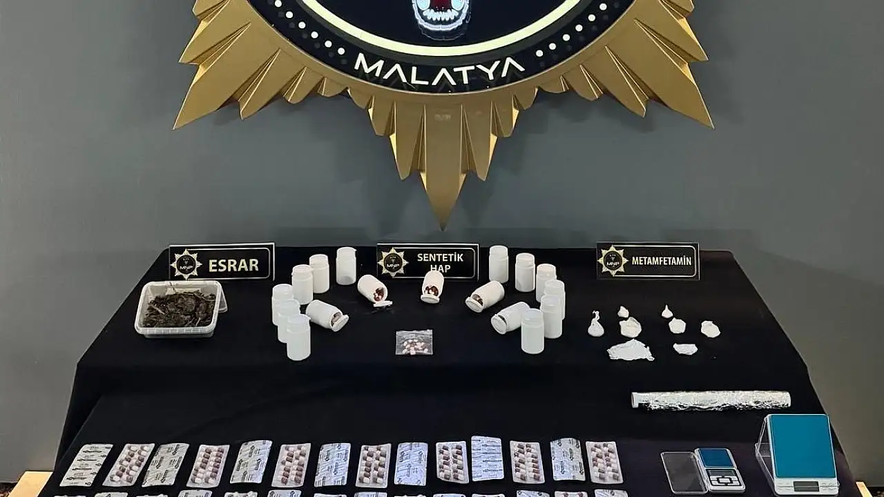 Malatya’da, İl Emniyet Müdürlüğü Narkotik Suçlarla Mücadele Şube Müdürlüğü ekipleri tarafından "torbacı" olarak tabir edilen sokak satıcılarına yönelik 3 ay süren teknik ve fiziki takip sonrasında operasyon düzenlendi. Projeli dosya çerçevesinde belirlenen adreslere eş zamanlı düzenlenen operasyonda bin 340 adet sentetik ecza hap, 140 gram esrar, 48,5 gram metamfetamin ve 2 adet hassas terazi ele geçirildi.