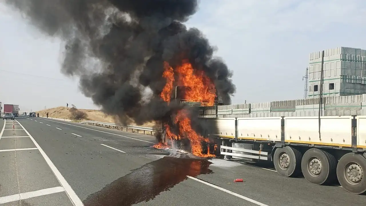 Malatya-Elazığ Karayolu Kale ilçesi mevkiinde inşaat malzemesi yüklü bir tırda çıkan yangın, itfaiye ekiplerince söndürüldü.
