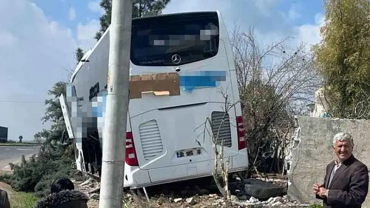 Mardin'in Nusaybin ilçesinde yolcu otobüsü, sürücüsünün kontrolünden çıkarak bir evin bahçesine girdi.