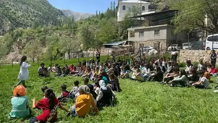 Batman'ın Sason ilçesinde bulunan 3 bin rakımlı Mereto Dağı eteklerindeki köy okullarını dolaşan seyyar tiyatro ekibi ve beraberinde bulunan alanında uzman ekipler, hem çocukların yüzünü güldürüyor, hem de sağlık eğitimi veriyor.