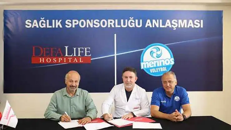Defa Life Hastanesinde gerçekleştirilen sponsorluk anlaşması imza törenine Hastane baş hekimi Dr. Ulaş Yanık, Merinos Spor Kulüp Başkanı Ali Atalar, kulüp yöneticileri ve teknik ekibiyle birlikte sporcular katıldılar.