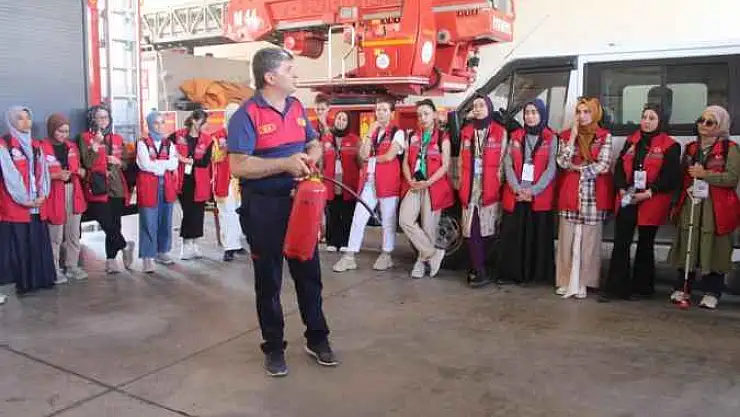 2-11 Eylül tarihlerini kapsayan 10 günlük Adıyaman programı boyunca birçok etkinliğe katılacak olan bayan öğrencilerin İtfaiye Müdürlüğüne yaptığı ziyareti değerlendiren yetkililer, öğrencilerin itfaiyecilerden yangından korunma yöntemleri hakkında uygulamalı bilgi aldığını dile getirdi.