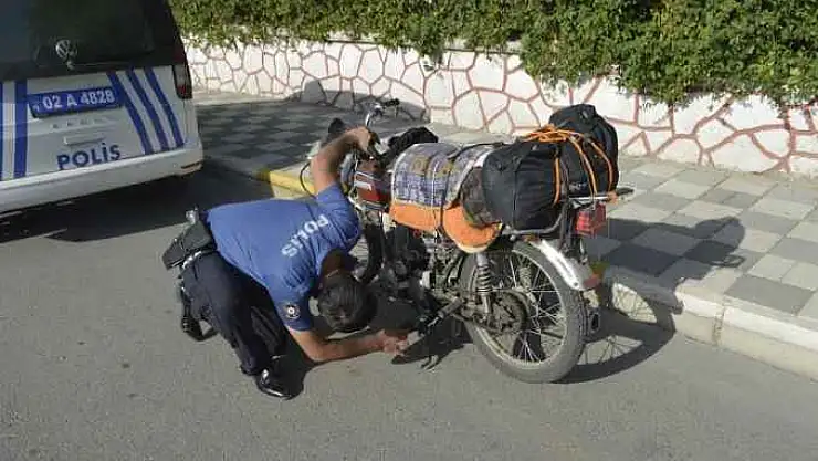 Adıyaman'da polis ekiplerinin durdurduğu motosikletin çalıntı olduğu anlaşıldı.