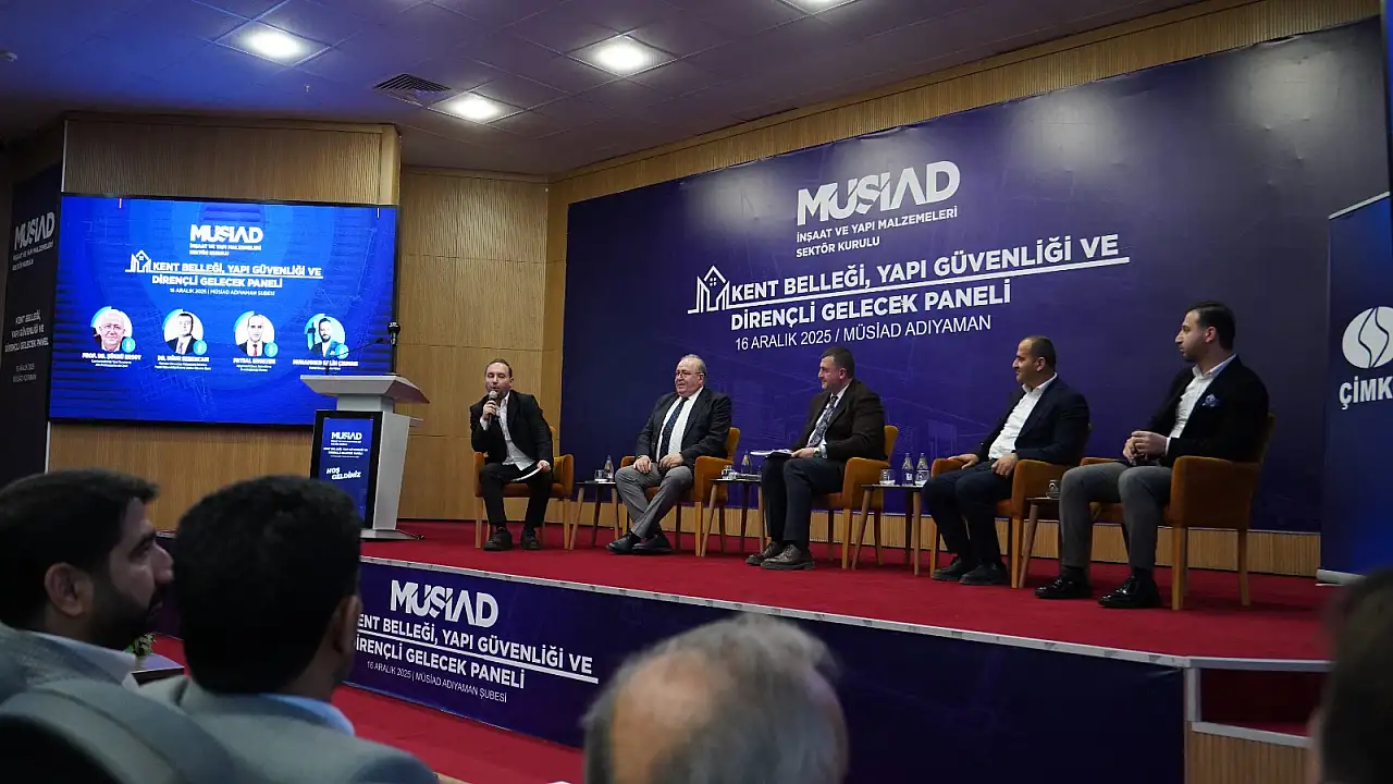 MÜSİAD İnşaat ve Yapı Malzemeleri Sektör Kurulu ve MÜSİAD Adıyaman Şubesi tarafından, 6 Şubat depremlerinin ardından şehirlerin yeniden inşa sürecine katkı sunmak amacıyla Adıyaman'da 'Kent Belleği, Yapı Güvenliği ve Dirençli Gelecek' başlıklı panel düzenlendi.