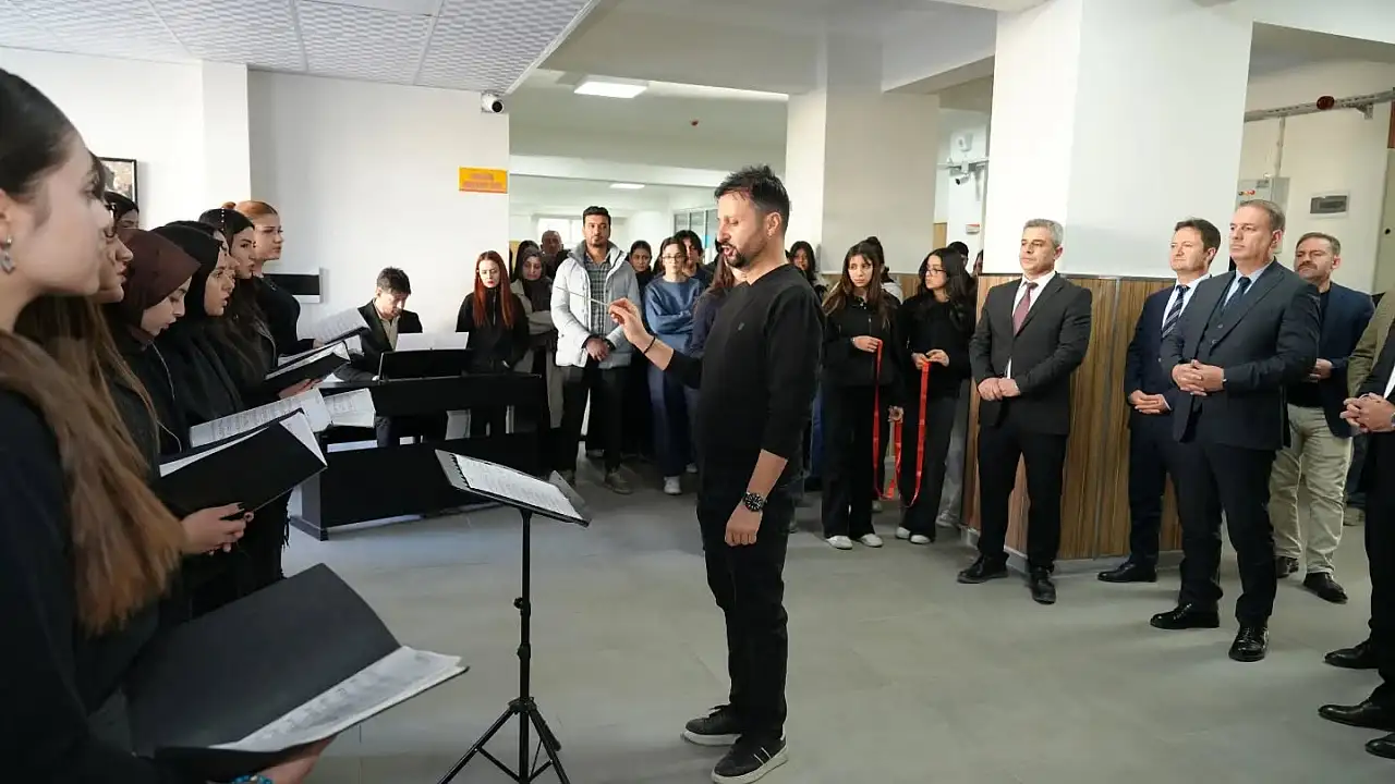 2025 Aile Yılı ve “Yeşil Vatan – Benim Okulum Geleceğe Çare” projeleri kapsamında Şehit Fatih Doğan Güzel Sanatlar Lisesi öğrencileri tarafından hazırlanan resim sergisinin açılışı, katılımcıların hep birlikte kurdele kesme töreniyle gerçekleştirildi.