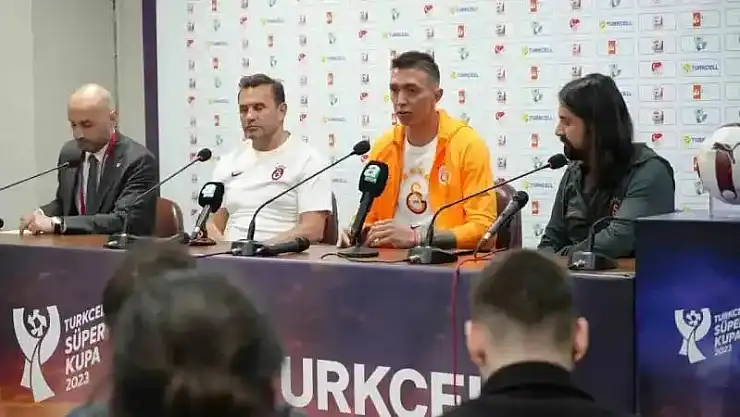 Galatasaray ile Fenerbahçe, yarın Süper Kupa maçında Şanlıurfa’da karşı karşıya gelecek. Mücadele öncesi Teknik Direktör Okan Buruk ve kaleci Fernando Muslera, maçın oynanacağı 11 Nisan Stadı’nda basın mensuplarına açıklamalarda bulundu. Teknik Direktörü Okan Buruk, görevlerini yapmak için burada olduklarını belirterek, "Yarın tam olarak ne olacağını bilmiyoruz ama biz üzerimize düşeni yapacağız. Yarın sahaya çıkacağız ve bekleyeceğiz. Kendi işimize odaklandık. Antrenman yapıp yarını bekliyoruz. Rakibimiz ne şekilde gelecek nasıl çıkacak bilmediğimiz için bekliyoruz. Fenerbahçe’yle maçı oynamayı çok isterdik. Maça hazırlanıp sahaya çıkacağız ve bekleyeceğiz. Benim açımdan bir şey söylemek zor. Ne olacağını da bilemiyoruz. Bizim bildiğimiz Fenerbahçe’nin yarın buraya geleceği ama hangi oyuncularla geleceklerler bilmiyoruz. Biz burada Urfa halkı ve çevre illerden gelen insanlarla birleştik. Tansiyonu ne kadar düşürürsek o kadar iyi. Bunu sağlamak için de elimizden ne geliyorsa yapacağız. Çok anlamlı bir organizasyon. Bütün gelirlerin depremzedelerle paylaşılacağı bir maç. Üzerimize düşeni Galatasaray takımı olarak yapmaya hazırız. Maçın ne olacağını bilmesek de biz karşılaşma için hazırız. Taraftarımızla birlikte kutlamamızı yapmak istiyoruz. Gönül isterdi burada sarılarak poz verelim. Türk futbolunun tansiyonunun düşmesine ihtiyaç var. Biz Galatasaray olarak üzerimize düşeni yapmaya hazırız. Daha geçen sene bir deprem oldu. Hepimiz birlik olduk. Kazanan Türk futbolu olsun, Türkiye olsun" dedi.