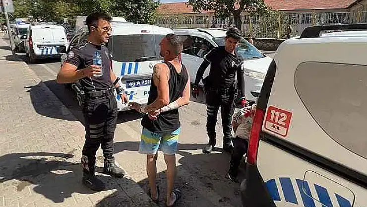 Kahramanmaraş'ta kimlik sorgusu için durdurulan iki şüpheli bir müddet polisle tartıştı, gözaltına alındıktan sonra da polislerin elinden su içti.