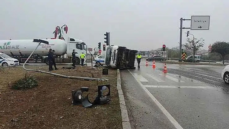 Önündeki araca çarpmamak için fren yapan minibüs yan yattı: 1 yaralı