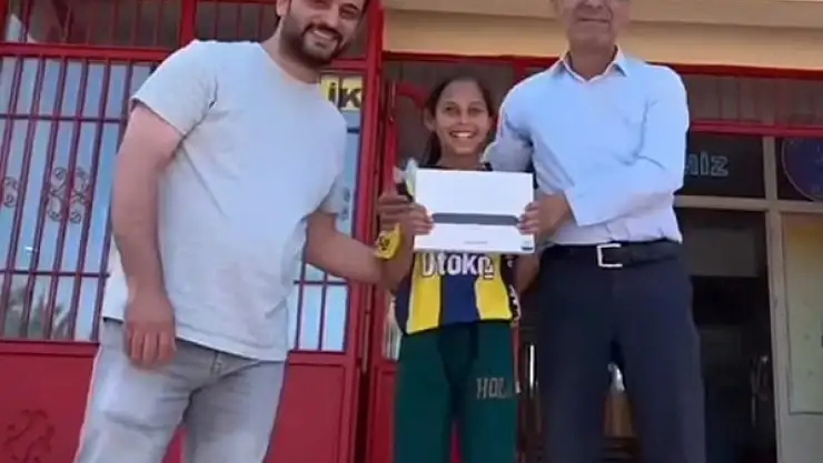 Görüntülerin devamında kadraja giren Fenerbahçe formalı Fatmanur Kaya isimli 6. sınıf öğrencisi, ayağına takılan çöpü yerden alarak geri dönüşüm kutusuna attı. Okul idaresi tarafından yapılan sosyal deneyde duyarlı davranışı ile dikkat çeken öğrenci Fatmanur Kaya’ya tüm öğrenciler ve öğretmenler önünde teşekkür edilerek tablet hediye edildi. Okula kırsal Karahüseyin Mahallesi’nden taşımalı eğitimle gelen Kaya’nın hediyesini aldığı anlardaki mutluluğu ise dikkat çekti. Görüntülere de saniye saniye yansıyan o anlar gönüllere dokunurken sosyal medyada da binlerce beğeni aldı.