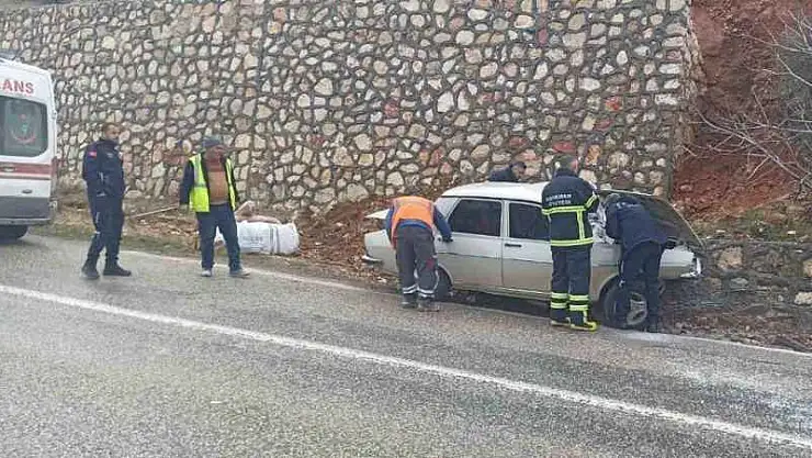 Adıyaman Çelikhan karayolu üzerinde sürücüsünün direksiyon hakimiyetini kaybettiği otomobil istinat duvarına çarptı.