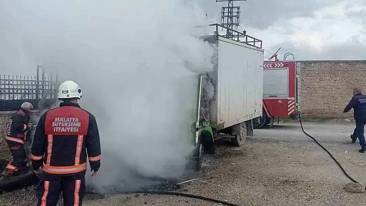 Malatya’nın Battalgazi ilçesine bağlı Dolamantepe DDY istasyonu sokak üzerinde bulunan Battalgazi konteyner kentte park halindeki bir kamyonda henüz bilinmeyen bir nedenden dolayı yangın çıktı. Alevlerin kısa sürede çoğalması ile yangın büyürken olay yerine gelen İtfaiye ekipleri alevlere müdahale etti. Kısa sürede yangın kontrol altına alınırken kamyonun ön kısmı kullanılamaz hale geldi.Polis yangınla ilgili inceleme başlattı.Haber Merkezi