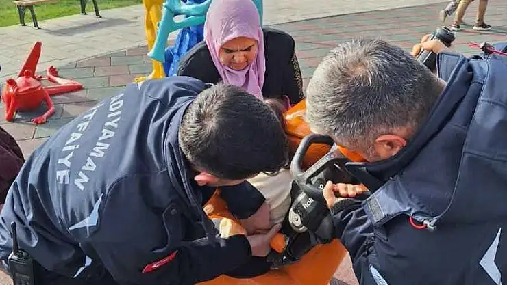 Adıyaman'da, park içerisinde bulunan oyun aletine sıkışan çocuk, itfaiye ekiplerinin çalışmaları sonucu kurtarıldı.