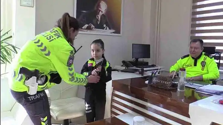 Gaziantep'te polis olma hayali kuran küçük kız, üniforma giydirilerek trafik şube müdürlüğünde ekiplerle birlikte görev yaptı.