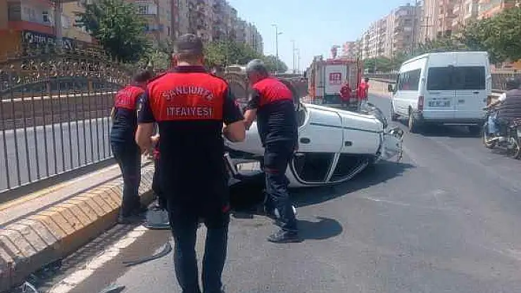 Şanlıurfa'da refüje çarparak devrilen otomobilin sürücüsü yaralandı.
