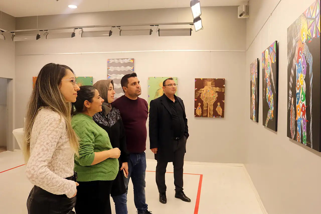 Ressam Mehmet Ali Doğan, tuval üzerine akrilik boya tekniğiyle yaptığı eserlerinden oluşan 'Sınırlanmış Alanlar Şamanik Görseller' resim sergisini SANKO Sanat Galerisi'nde sanatseverlerle buluşturdu.