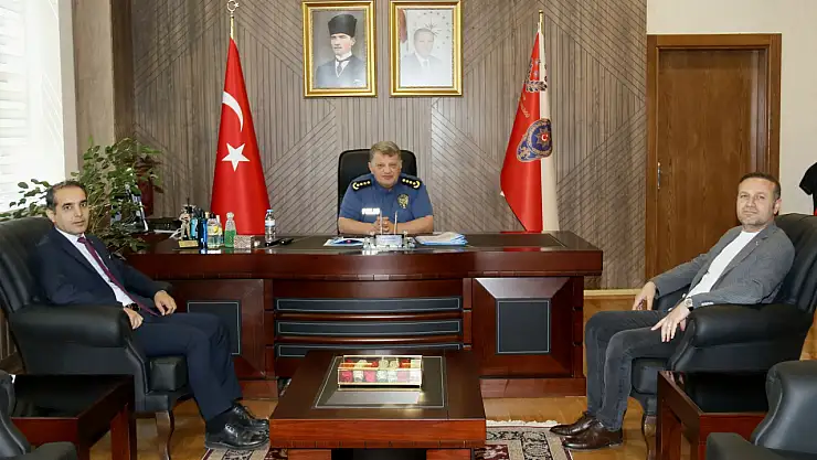 Adıyaman İl Sağlık Müdürü Prof. Dr. Mehmet Şirik, Eğitim ve Araştırma Hastanesi Başhekimi Doç. Dr. Kasım Turgut ile birlikte, İl Emniyet Müdürü Alper Uzman'ı makamında ziyaret etti.