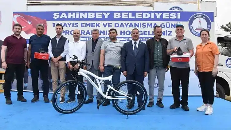 Şahinbey Belediyesi, 1 Mayıs Emek ve Dayanışma Günü’nü kutlamalarında Şahinbey Belediyesi çalışanlarına kura ile bisiklet, tablet ve spor ayakkabısı hediye etti.