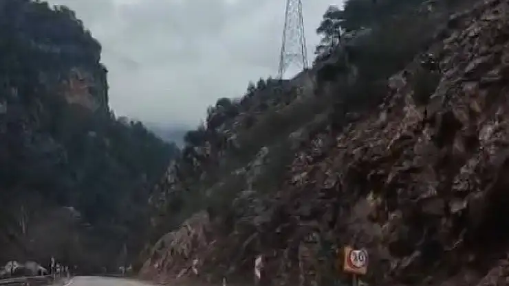 Adana'nın Saimbeyli ilçesinde etkili olan sağanak yağışın ardından dağlık alandan kopan kaya parçası kara yoluna düştü. Olay, geçmişte 4 öğretmenin hayatını kaybettiği bölgede meydana gelmesi nedeniyle endişe oluşturdu.