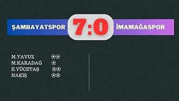 Adıyaman'ın Şambayat Beldesinde Yapılan Karşılaşmada Şambayatspor İmamağasporu kendi evinde 7-0 mağlup etti.