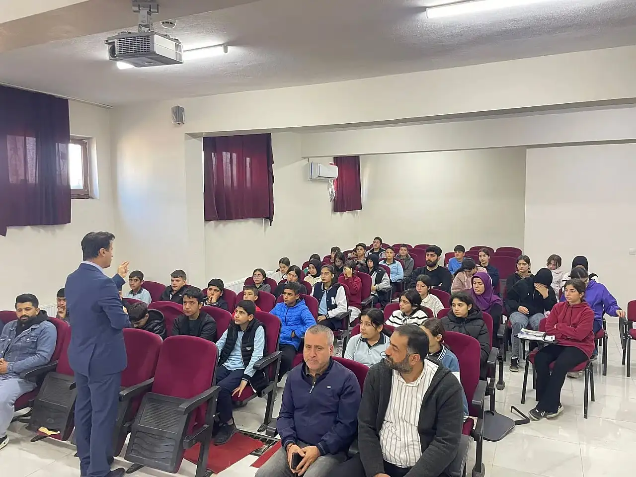 Samsat İlçe Milli Eğitim Müdürü Abdullah Akın, okul ziyaretleri kapsamında Şehit Fırat Demir Ortaokulunda 8. sınıf öğrencileri ve öğretmenlerle bir araya geldi.