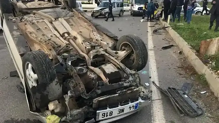 Sanayi kavşağında çarpışan iki araçtan biri takla attı: 2 yaralı